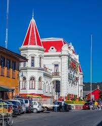 Antiguo pueblo minero con arquitectura europea que recuerda su época de esplendor.