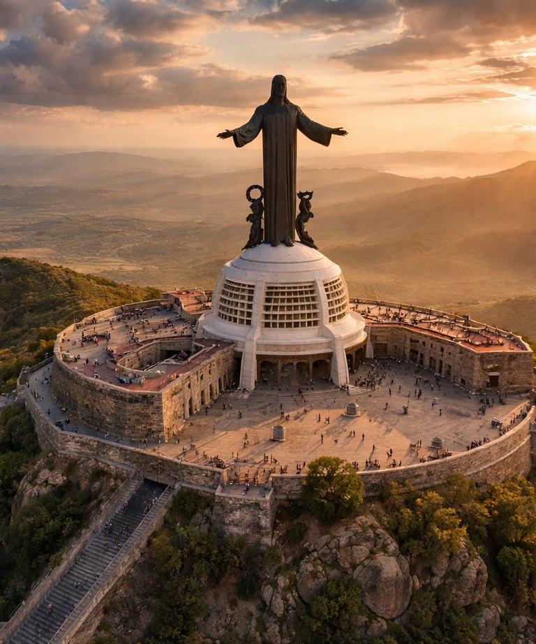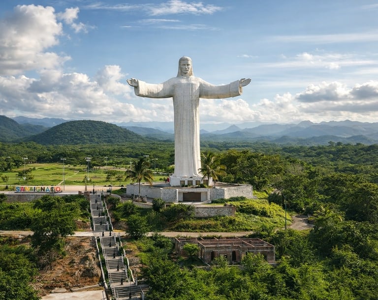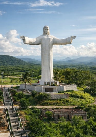 Monumento que observa el valle desde lo alto, símbolo de fe y serenidad en la sierra sinaloense.