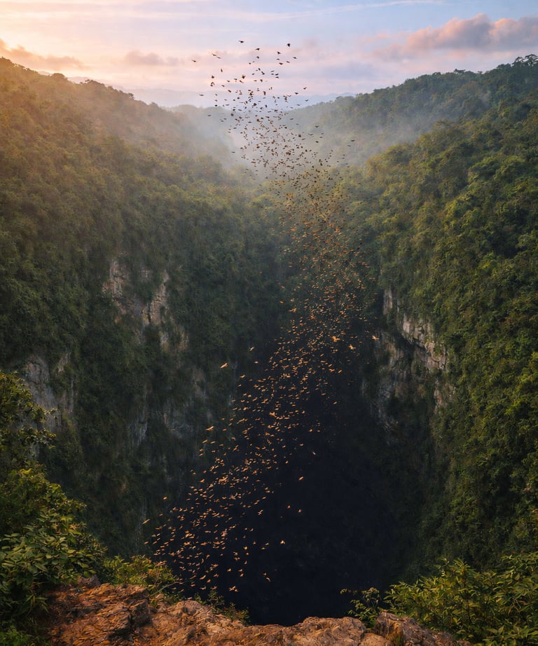 Impresionante abismo natural donde aves y selva protagonizan un espectáculo diario.